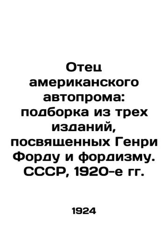 "The Father of the American Automobile Industry: A collection of three books on Henry Ford and Fordism. The USSR, 1920s In Russian /Otets amerikanskogo avtoproma: podborka iz trekh izdaniy, posvyashchennykh Genri Fordu i fordizmu. SSSR, 1920-e gg. Ford G. My Life, My Achievements. 1924; Ford, G. Today and Tomorrow. 1927; Lavrov, N. S. Fordism: The Teaching of the Production of Things. 1928. USSR. Ford, G. My Life, My Achievements Prev. Professor of the Chair of Scientific Organization of Work and the Prov. N. S. Lavrov; Transv. Edited by Engineering V.A. Zorgenfrei. L.: Time, 1924.-326 p., 2 pages; 21x14 see. We have thousands of titles and often several copies of each title may be available. Please feel free to contact us for a detailed description of the copies available. SKUalb8d8e5bc65339ee3e."