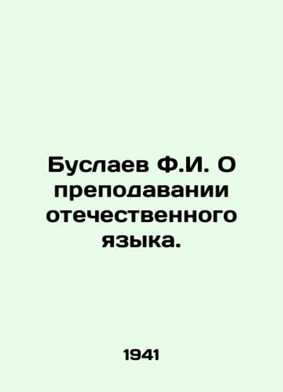 F. Buslayev On Teaching the Russian Language. In Russian /Buslaev F. O prepodavanii otechestvennogo yazyka. L Educational and pedagogical 1941. 248 p. We have thousands of titles and often several copies of each title may be available. Please feel free to contact us for a detailed description of the copies available. SKUalb286dc97c22602202.