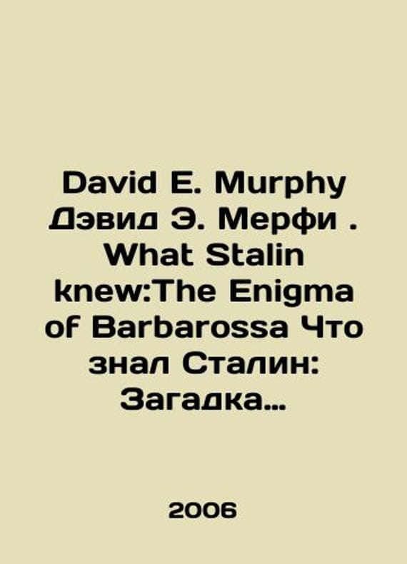David E. Murphy David E. Murphy. What Stalin knew: The Enigma of Barbarossa What Stalin knew: The Barbarossa Mystery. In Russian /David E.Murphy Devid E. Merfi. WhatStalin knew:TheEnigma of Barbarossa Chto znal Stalin: Zagadka Barbarossy. In Russian. US Yale University Press: 1st Ed 2006. 352c. We have thousands of titles and often several copies of each title may be available. Please feel free to contact us for a detailed description of the copies available. SKUalb8de1f866c155dfc3