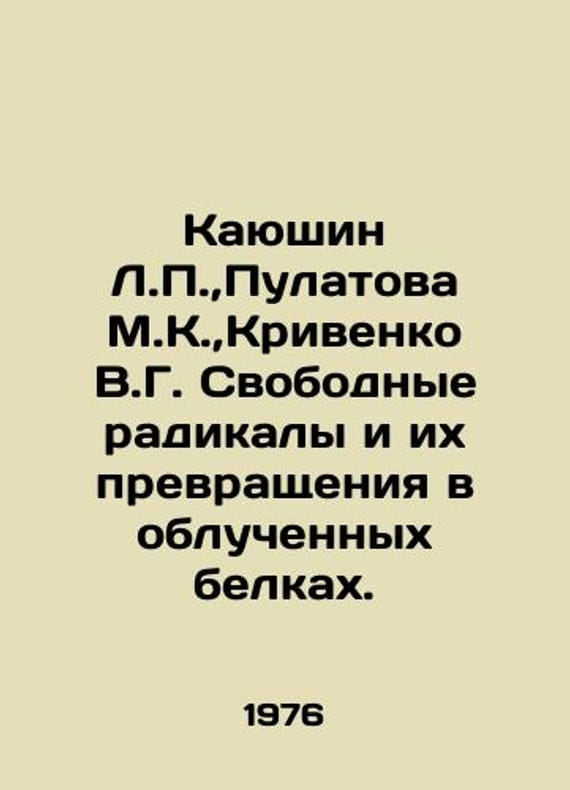 Kayushin L.P., Pulatova M.K., Krivenko V.G. Free radicals and their transformation into irradiated proteins. In Russian /Kayushin L.P., Pulatova M.K., Krivenko V.G. Svobodnye radikaly i ikh prevrashcheniya v obluchennykh belkakh. In Russian. M. Aitomizdat. 1976. 272c. We have thousands of titles and often several copies of each title may be available. Please feel free to contact us for a detailed description of the copies available. SKUalb8e4978804cb686a5