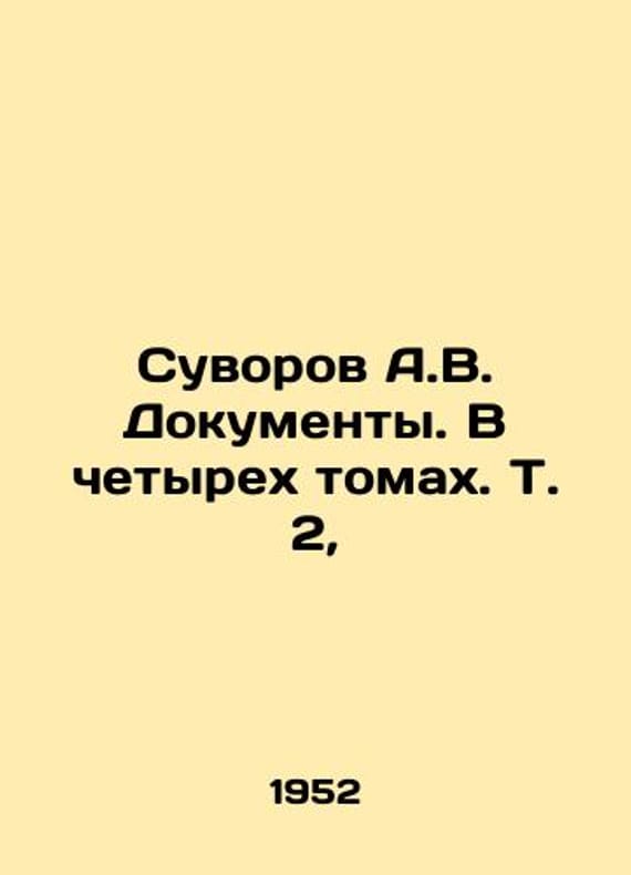 Suvorov A.V. Documents. In four volumes, Vol. 2, In Russian /Suvorov A.V. Dokumenty. V chetyrekh tomakh. T. 2, In Russian. Series: Russian Commanders. Materials for the History of the Russian Army. Edited by Colonel G.P. Meshcheryakov We have thousands of titles and often several copies of each title may be available. Please feel free to contact us for a detailed description of the copies available. SKUalb8e4ee4f004f29921