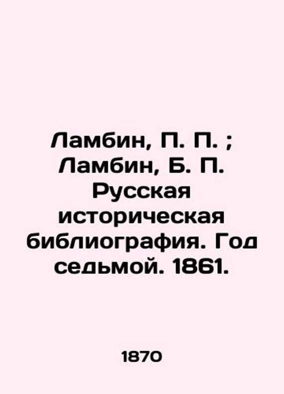 """Lambin P. P.; Lambin B. P. Russian Historical Bibliography. Year 7 1861. In Russian (ask us if in doubt)/Lambin P. P.; Lambin B. P. Russkaya istoricheskaya bibliografiya. God sedmoy. 1861.St. Petersburg Typography of the Imperial Academy of Sciences 1870. IV 347 1 p. SKUalb8e57fb15f60efc2a."""