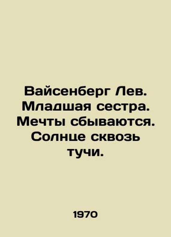 Weissenberg Leo. Younger sister. Dreams come true. Sun through clouds. In Russian /Vaysenberg Lev. Mladshaya sestra. Mechty sbyvayutsya. Solntse skvoz tuchi. In Russian. Trilogy. L. Soviet writer 1970. 928s. We have thousands of titles and often several copies of each title may be available. Please feel free to contact us for a detailed description of the copies available. SKUalb8e58b3e4ad2ee85c