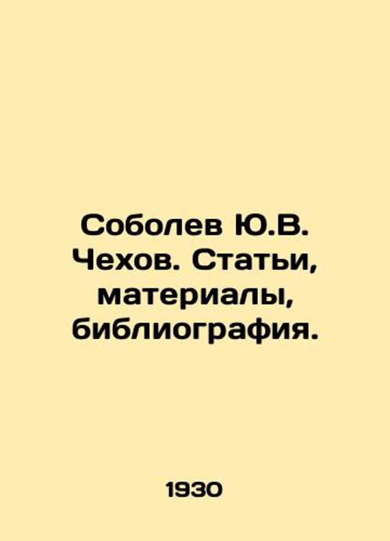 Yu.V. Chekhov Sobolev. Articles, materials, bibliography. In Russian /Sobolev Yu.V. Chekhov. Stati, materialy, bibliografiya. In Russian. Moscow Federation, 1930, 345, 2 p. We have thousands of titles and often several copies of each title may be available. Please feel free to contact us for a detailed description of the copies available. SKUalb8e970584b1ceb1f7