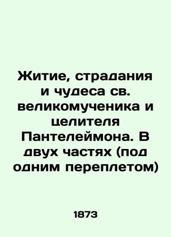 The Life Suffering and Miracles of the Holy Great Martyr and Healer Panteleimon. In two parts (under one cover) In Russian (ask us if in doubt)/Zhitie stradaniya i chudesa sv. velikomuchenika i tselitelya Panteleymona. V dvukh chastyakh (pod odnim perepletom) 1873 Pre-Revolutionary Edition dedicated to the well-known and revered Christian saint and healer Panteleimon the Great Martyr. The edition contains an image of a passionate patient and a view of a temple erected at the place of his burial in Nicomedia on the shore of the Sea of Marmara. Before the revolution in Russia Panteleimon's life was republished many times. We have thousands of titles and often several copies of each title may be available. Please feel free to contact us for a detailed description of the copies available. SKUalb8eb62e1e5dcd2e75