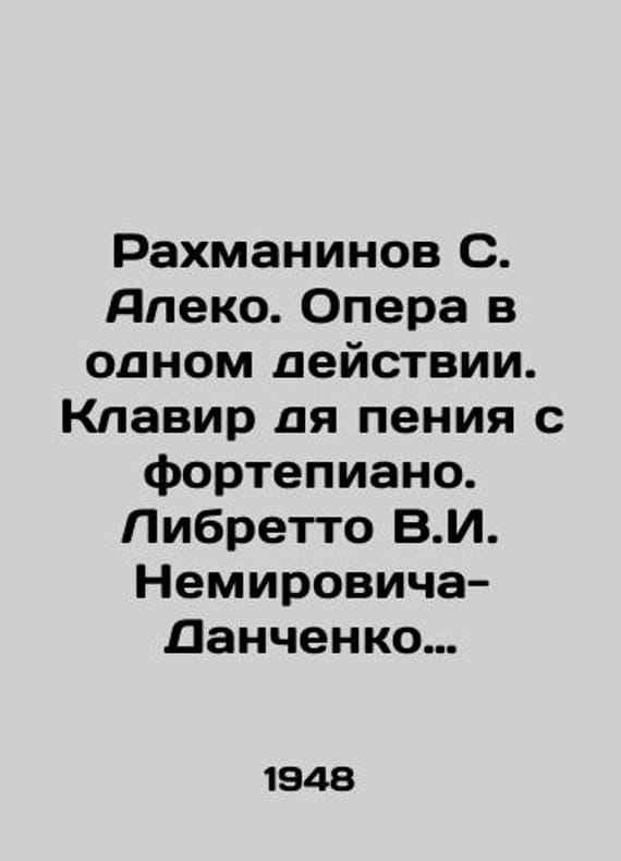 Rachmaninov S. Aleko. Opera in one act. A clavor singing from the piano. Libretto by V.I. Nemirovich-Danchenko, based on A.S. Pushkins poem Gypsy. In Russian /Rakhmaninov S. Aleko. Opera v odnom deystvii. Klavir dya peniya s fortepiano. Libretto V.I. Nemirovicha-Danchenko po poeme A.S. Pushkina Tsygany. In Russian. M. Muzgiz. 1948. 116s. We have thousands of titles and often several copies of each title may be available. Please feel free to contact us for a detailed description of the copies available. SKUalb8ed8d4c9addc0227