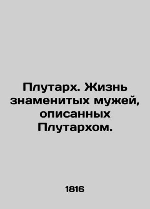 Plutarch. The lives of famous husbands described by Plutarch. In Russian (ask us if in doubt)/Plutarkh. Zhizn znamenitykh muzhey opisannykh Plutarkhom. Part Two. St. Petersburg. In Jos Ioannesovs Printing House. 1816. 409 p. We have thousands of titles and often several copies of each title may be available. Please feel free to contact us for a detailed description of the copies available. SKUalb8f0c7c01a13d1f00