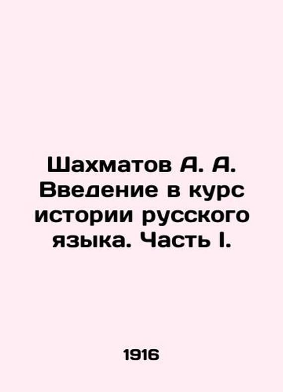 A. A. Chechmatov Introduction to the History of the Russian Language. Part I. In Russian /Shakhmatov A. A. Vvedenie v kurs istorii russkogo yazyka. Chast I. In Russian. Historical Process of Education of Russian Tribes and Languages. Pg. Publication Committee of Students of the Faculty of History and Philology of the University of 1916 (146 and III) p., Encyclopedic Format. Life-long edition of the course of lectures by the largest Russian linguist (1864-1920), specialist of Russian and Slavic languages, Russian philologist. We have thousands of titles and often several copies of each title may be available. Please feel free to contact us for a detailed description of the copies available. SKUalb8f13c6869831897f