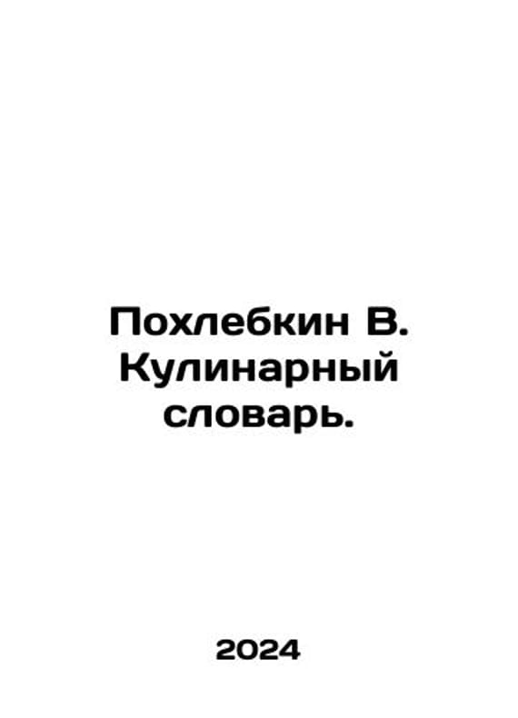 Pokhlebkin V. Culinary Dictionary. In Russian /Pokhlebkin V. Kulinarnyy slovar. In Russian. : 2024. 656. We have thousands of titles and often several copies of each title may be available. Please feel free to contact us for a detailed description of the copies available. SKUalb8f516a7a5a7ac199