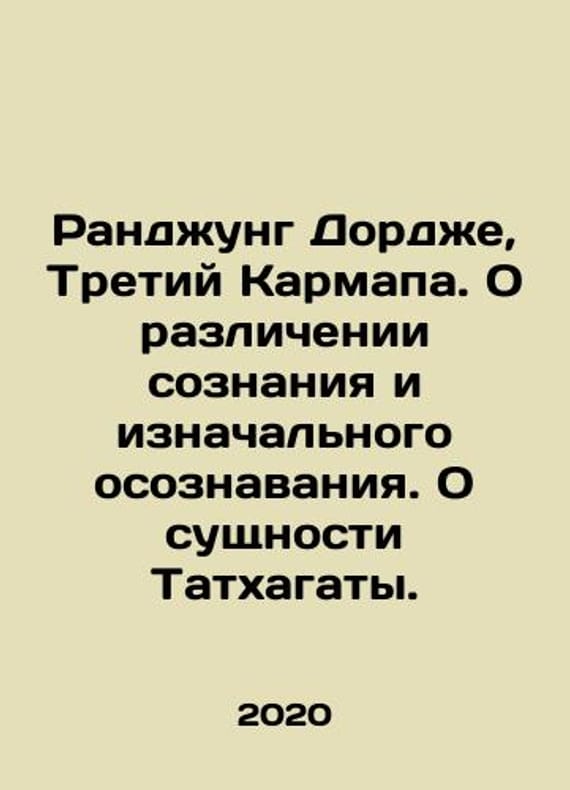 Ranjung Dorje, The Third Karmapa. On the distinction between consciousness and original awareness. On the essence of the Tathagata. In Russian /Randzhung Dordzhe, Tretiy Karmapa. O razlichenii soznaniya i iznachalnogo osoznavaniya. O sushchnosti Tatkhagaty.Translation from Tibetan. M. Ganges 2020.We have thousands of titles and often several copies of each title may be available. Please feel free to contact us for a detailed description of the copies available. SKUalb8f554a6af43388bc.