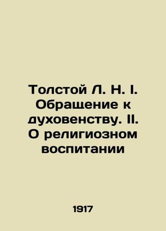 Tolstoy L. N. I. Address to the Clergy. II. On Religious Education In Russian /Tolstoy L. N. I. Obrashchenie k dukhovenstvu. II. O religioznom vospitanii Pg. Edition of the Mediator and Free Life 1917. We have thousands of titles and often several copies of each title may be available. Please feel free to contact us for a detailed description of the copies available. SKUalb8f58dd295306a816.