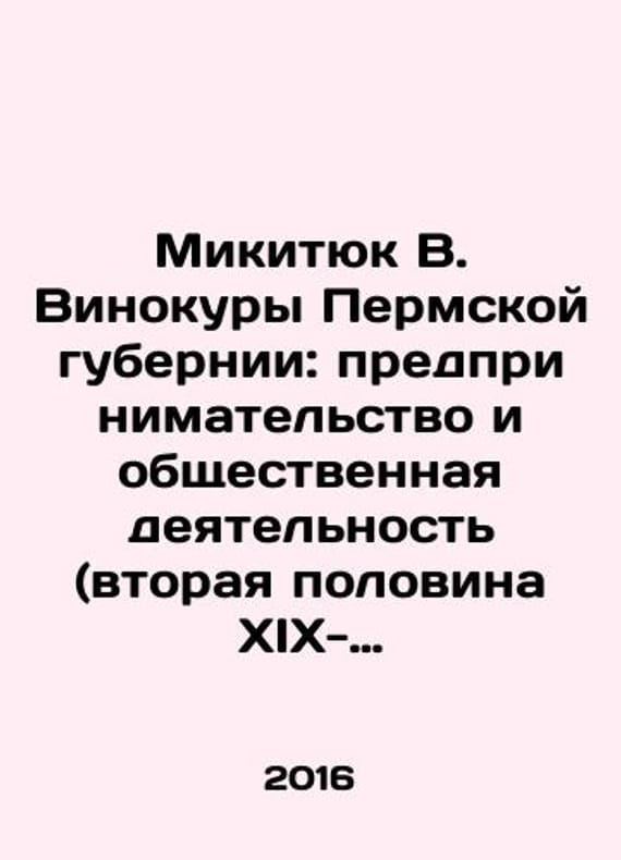 Mikityuk V. Vinokury of the Perm province: entrepreneurship and social activity (the second half of the 19th-early 20th centuries) In Russian /Mikityuk V. Vinokury Permskoy gubernii: predprinimatelstvo i obshchestvennaya deyatelnost (vtoraya polovina XIX-nachalo XX v.) In Russian. Yekaterinburg. Russian Academy of Sciences. 2016. 176 p. We have thousands of titles and often several copies of each title may be available. Please feel free to contact us for a detailed description of the copies available. SKUalb8f69b0fb75882db0