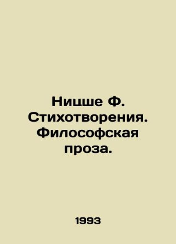 Nietzsche F. Poems. Philosophical Prose. In Russian /Nitsshe F. Stikhotvoreniya. Filosofskaya proza. Onion and lira). Translated from German. S.Pb.Khl. 1993. We have thousands of titles and often several copies of each title may be available. Please feel free to contact us for a detailed description of the copies available. SKUalb8f69cca36e36d10c.