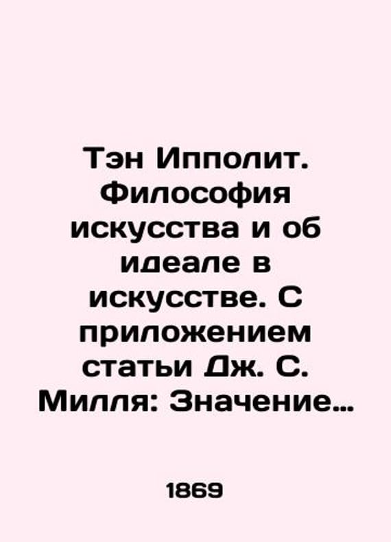 Ten Hippolytes. Philosophy of Art and the Ideal in Art. Appended with an article by J. S. Mill: The Role of Art in the General System of Education In Russian /Ten Ippolit. Filosofiya iskusstva i ob ideale v iskusstve. S prilozheniem stati Dzh. S. Millya: Znachenie iskusstva v obshchey sisteme vospitaniya. In Russian. Voronezh. Editions of Philological Records, 1869. II, 98 p. We have thousands of titles and often several copies of each title may be available. Please feel free to contact us for a detailed description of the copies available. SKUalb8f8dc26b254a9393