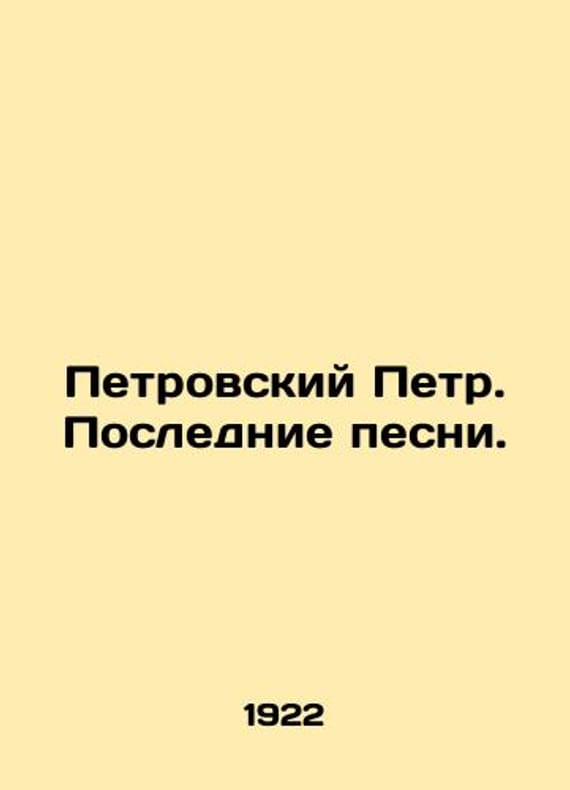 Peter Petrovsky. Last songs. In Russian (ask us if in doubt)/Petrovskiy Petr. Poslednie pesni. Moscow. Publishing House Z.I. Grzhebin. 1922. 80p. We have thousands of titles and often several copies of each title may be available. Please feel free to contact us for a detailed description of the copies available. SKUalb8f95cc149d19e786