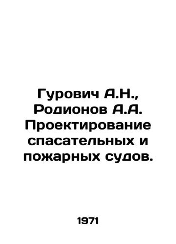 Gurovich A.N., Rodionov A.A. Design of rescue and fire-fighting vessels. In Russian /Gurovich A.N., Rodionov A.A. Proektirovanie spasatelnykh i pozharnykh sudov. In Russian. Scientific Edition. L. Shipbuilding, 1971, 288 p. We have thousands of titles and often several copies of each title may be available. Please feel free to contact us for a detailed description of the copies available. SKUalb8fa8aa96187f1fdd