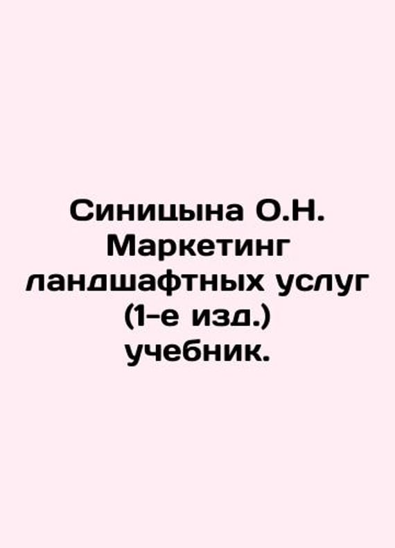 Sinitsyna O.N. Landscape Services Marketing (1st ed.) textbook. In Russian /Sinitsyna O.N. Marketing landshaftnykh uslug (1-e izd.) uchebnik. Series: M. Akademia (Academia) 2021 160We have thousands of titles and often several copies of each title may be available. Please feel free to contact us for a detailed description of the copies available. SKUalb8fae0c2a413ca057.