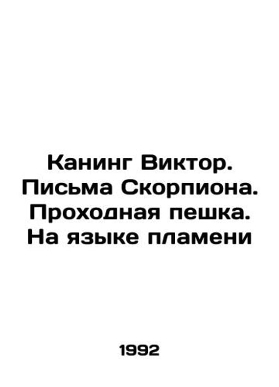 Canning Victor. Scorpios Letters. A Pawn in the Language of Flame In Russian /Kaning Viktor. Pisma Skorpiona. Prokhodnaya peshka. Na yazyke plameni In Russian. The last two novels, unlike other editions, are reproduced in their entirety, without notes. The author introduces the reader into a world of crime, violence, corruption, and cruelty arising in a society where chaos and instability reign at certain times. We have thousands of titles and often several copies of each title may be available. Please feel free to contact us for a detailed description of the copies available. SKUalb8fbb58f7acb150e8