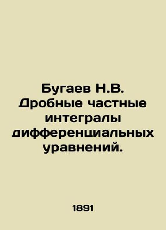 N.V. Bugaev Fractional partial integrals of differential equations. In Russian /Bugaev N.V. Drobnye chastnye integraly differentsialnykh uravneniy. In Russian. Read in the meeting of the Physics and Mathematics Department on September 11, 1891. Appendix to volume LXVII of the Notes of the Imperial Academy of Sciences. # 4. St. Petersburg: Typography of the Imperial Academy of Sciences, 1891. 2, 12 p. Format: 24.5x16.5 sm. We have thousands of titles and often several copies of each title may be available. Please feel free to contact us for a detailed description of the copies available. SKUalb8fcebcf15c4e0863