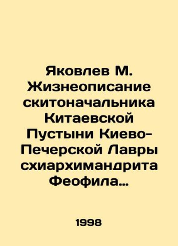 Yakovlev M. Life description of the head of the Kitaev Desert of the Kyiv-Pechersk Lavra Archimandrite Theophilus (1929-1996). In Russian /Yakovlev M. Zhizneopisanie skitonachalnika Kitaevskoy Pustyni Kievo-Pecherskoy Lavry skhiarkhimandrita Feofila (1929-1996).2nd edition, supplemented. Kiev 1998.We have thousands of titles and often several copies of each title may be available. Please feel free to contact us for a detailed description of the copies available. SKUalb901c0ac40e2674a6.
