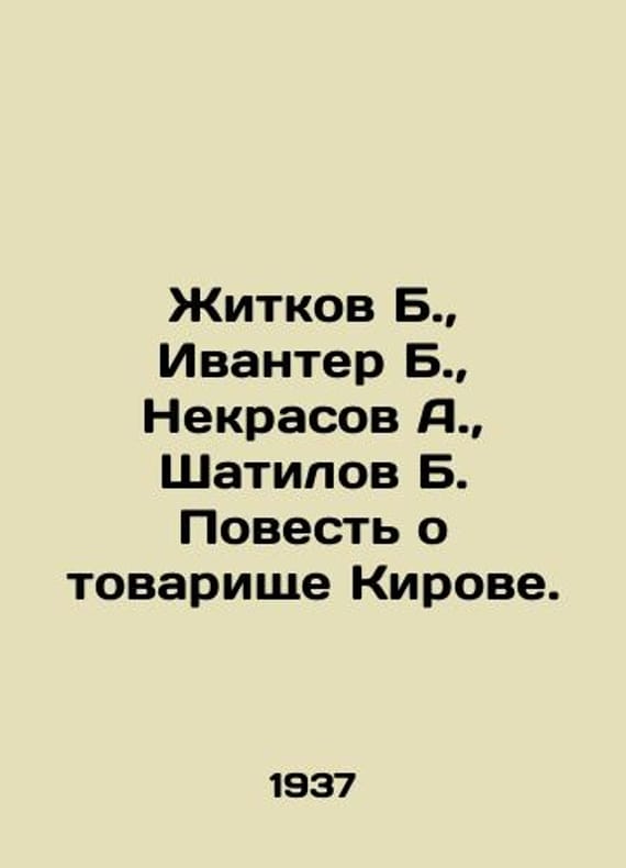 Zhitkov B., Ivanter B., Nekrasov A., Shatilov B. The Story of Comrade Kirov. In Russian /Zhitkov B., Ivanter B., Nekrasov A., Shatilov B. Povest o tovarishche Kirove. M. Detizdat 1937. We have thousands of titles and often several copies of each title may be available. Please feel free to contact us for a detailed description of the copies available. SKUalb903bf50c63a2d1b9.