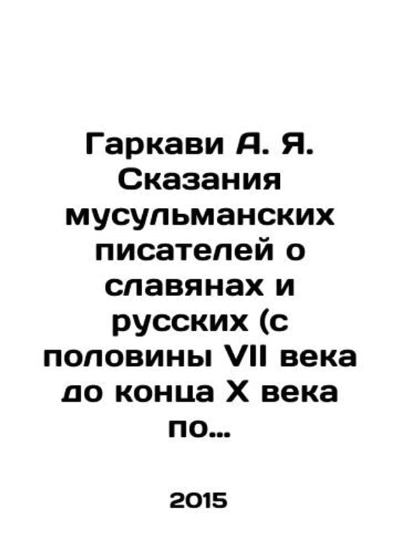 Garkavi A.Ya. Tales of Muslim Writers about Slavs and Russians (from the half of the 7th century to the end of the 10th century AD) and Supplements to Tales of Muslim Writers about Slavs and Russians In Russian /Garkavi A. Ya. Skazaniya musulmanskikh pisateley o slavyanakh i russkikh (s poloviny VII veka do kontsaxveka po R.Kh.) and Dopolneniya k sochineniyu Skazaniya musulmanskikh pisateley o slavyanakh i russkikh In Russian. 5 copy Moscow Publishing House, V. Sekachev, 2015, 360s. We have thousands of titles and often several copies of each title may be available. Please feel free to contact us for a detailed description of the copies available. SKUalb90459e5b5d7e00cb