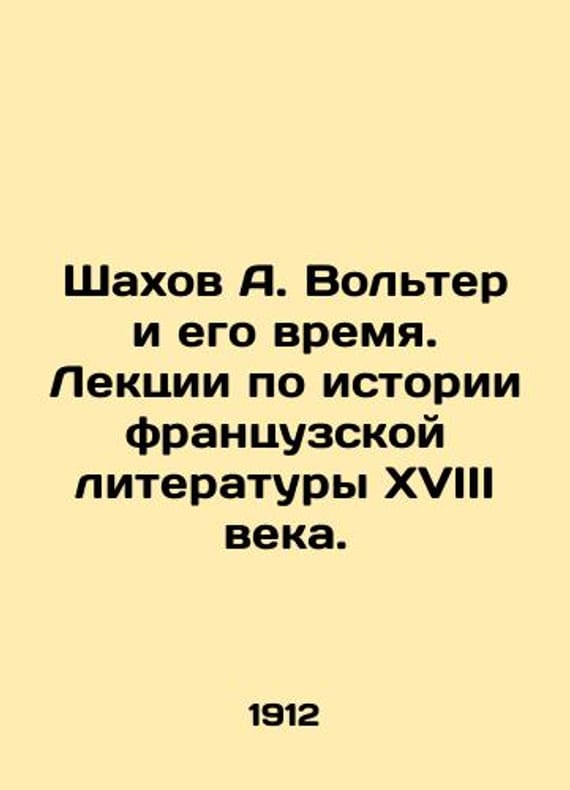 Shahov A. Voltaire and his time. Lectures on the history of French literature in the eighteenth century. In Russian (ask us if in doubt)/Shakhov A. Volter i ego vremya. Lektsii po istorii frantsuzskoy literatury XVIII veka.. St. Petersburg Trenke and Fusno printing house 1912. 352 p. SKUalb90584b0d39a10784.
