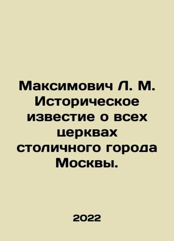 Maksimovich L. M. Historical news about all the churches of the capital city of Moscow. In Russian /Maksimovich L. M. Istoricheskoe izvestie o vsekh tserkvakh stolichnogo goroda Moskvy. In Russian. M. Omega-L 2022. 226 p. We have thousands of titles and often several copies of each title may be available. Please feel free to contact us for a detailed description of the copies available. SKUalb9060d941337fdc8b