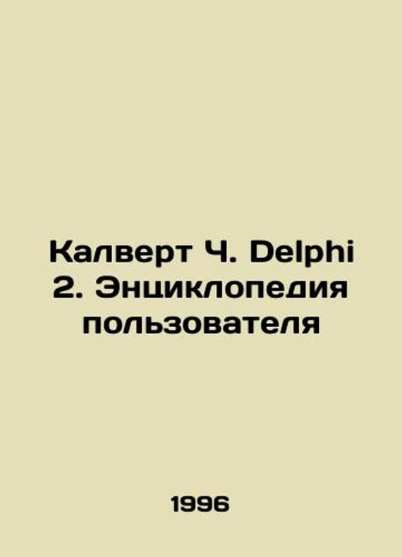 Calvert C. Delphi 2. User Encyclopedia In Russian /Kalvert Ch. Delphi 2. Entsiklopediya polzovatelya In Russian. pen from English. Kyiv 1996. We have thousands of titles and often several copies of each title may be available. Please feel free to contact us for a detailed description of the copies available. SKUalb907fc2df85ebf170