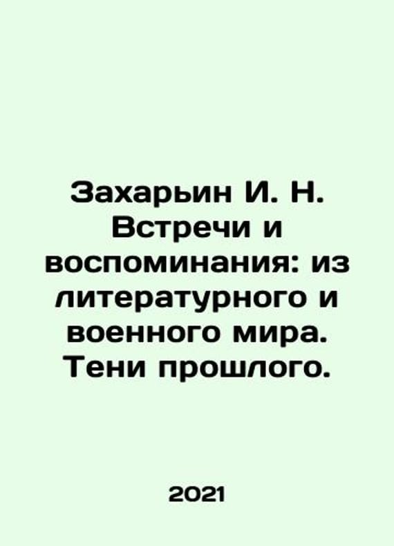 Zahariin I. N. Meetings and Memories: From the Literary and Military World. Shadows of the Past. In Russian /Zakharin I. N. Vstrechi i vospominaniya: iz literaturnogo i voennogo mira. Teni proshlogo. In Russian. Entry of the article by D. I. Bolotina, note by D. I. Bolotina, V. E. Klimanova. M. Kuchkovo field 2021. 576 p. We have thousands of titles and often several copies of each title may be available. Please feel free to contact us for a detailed description of the copies available. SKUalb90bf2ade56c21bd8