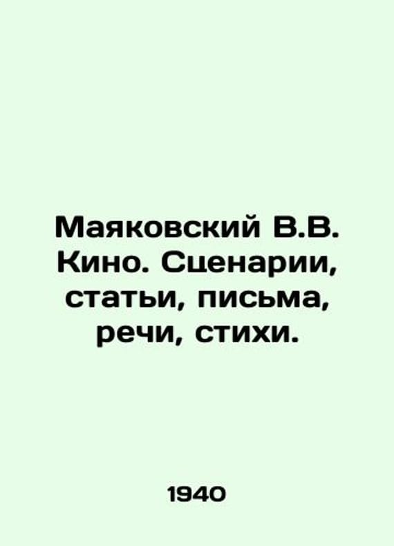 Mayakovsky V.V. Film. Scenarios, articles, letters, speeches, poems. In Russian /Mayakovskiy V.V. Kino. Stsenarii, stati, pisma, rechi, stikhi. In Russian. Circulation 3000. M. Gokinoizdat. 1940. 328 p. We have thousands of titles and often several copies of each title may be available. Please feel free to contact us for a detailed description of the copies available. SKUalb912703f4886ce1c1
