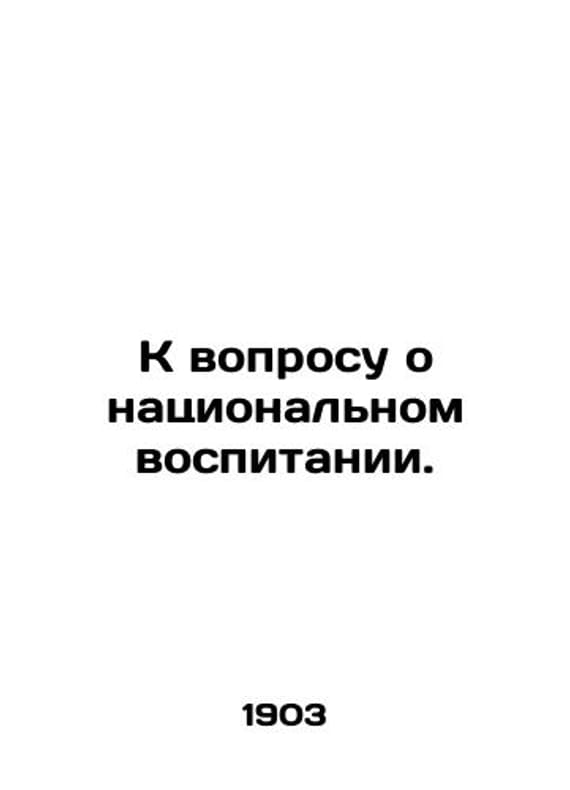 To the question of national education. In Russian /K voprosu o natsionalnom vospitanii. In Russian. Odessa. Publishing House of Shermans Bookshop in Odessa. 1903. 40s. We have thousands of titles and often several copies of each title may be available. Please feel free to contact us for a detailed description of the copies available. SKUalb9134e7be43086f78