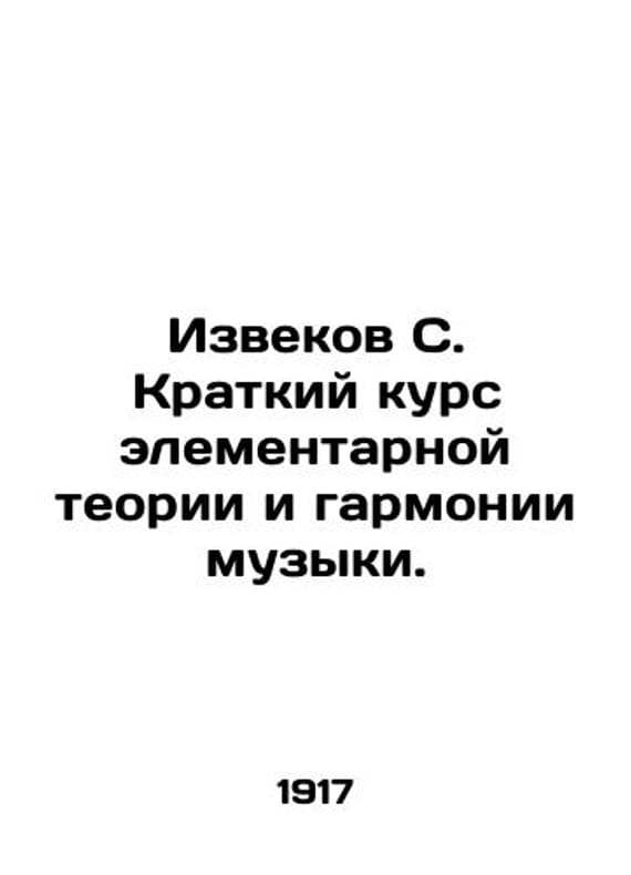 A Short Course in Elemental Theory and Harmony of Music. In Russian /Izvekov S. Kratkiy kurs elementarnoy teorii i garmonii muzyki. In Russian. 2nd edition. M Edition by P. Juergenson, 1917. 71 p. We have thousands of titles and often several copies of each title may be available. Please feel free to contact us for a detailed description of the copies available. SKUalb913f5e7c7d8402b5
