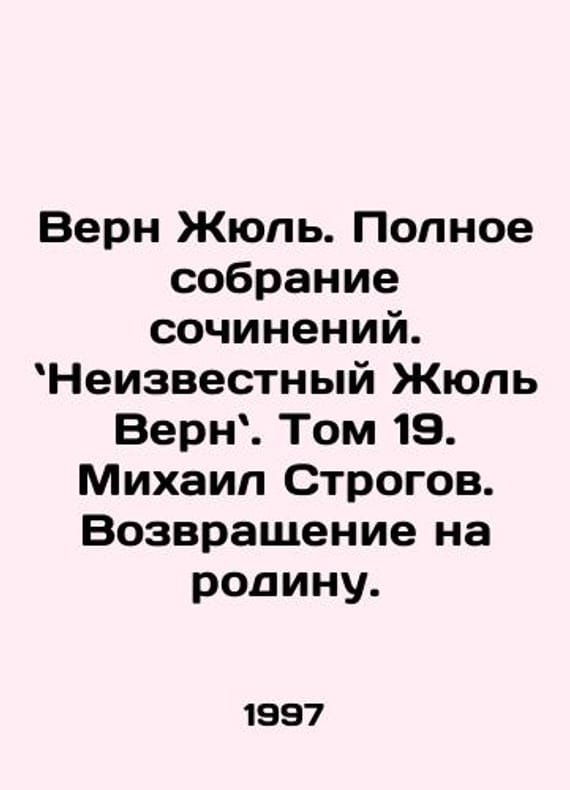 Verne Jules. Complete collection of essays. Unknown Jules Verne. Volume 19. Mikhail Strogov. Homecoming. In Russian /Vern Zhyul. Polnoe sobranie sochineniy. Neizvestnyy Zhyul Vern. Tom 19. Mikhail Strogov. Vozvrashchenie na rodinu. In Russian. M. Ladomir. 1997. 457 p. We have thousands of titles and often several copies of each title may be available. Please feel free to contact us for a detailed description of the copies available. SKUalb916c37f67b0f3df5
