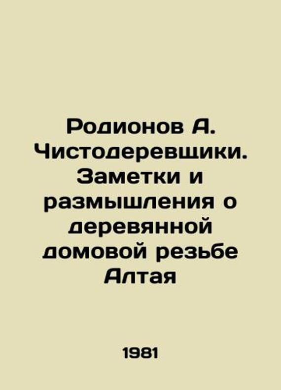 Rodionov A. Chisholders. Notes and reflections on the wooden house carvings of Altai In Russian /Rodionov A. Chistoderevshchiki. Zametki i razmyshleniya o derevyannoy domovoy rezbe Altaya In Russian. Altai Book Publishing House, 1981. 144 p. We have thousands of titles and often several copies of each title may be available. Please feel free to contact us for a detailed description of the copies available. SKUalb91f0fc4e9306cc23