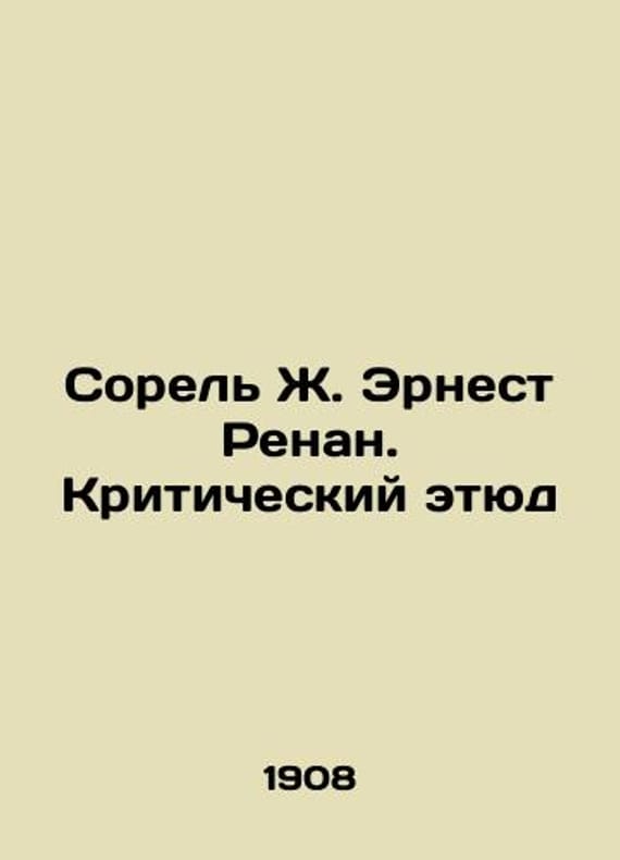 Sorel J. Ernest Renan: A Critical Study In Russian /Sorel Zh. Ernest Renan. Kriticheskiy etyud Translation from French by V.I. Ivanov, St. Petersburg, 1908. We have thousands of titles and often several copies of each title may be available. Please feel free to contact us for a detailed description of the copies available. SKUalb92019dda4820c292.