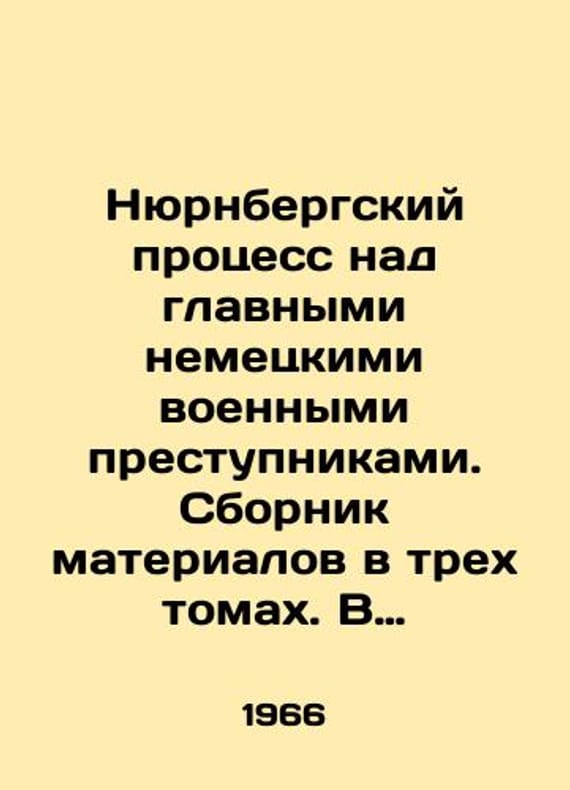 Nuremberg Trials of Germanys Top War Criminals. A collection of materials in three volumes. Available Volume 2, Volume 3 In Russian /Nyurnbergskiy protsess nad glavnymi nemetskimi voennymi prestupnikami. Sbornik materialov v trekh tomakh.V nalichii TOM 2, TOM 3 In Russian. Under the general editor R.A. Rudenko. M. Legal literature. 1966. 800 and 800 s. We have thousands of titles and often several copies of each title may be available. Please feel free to contact us for a detailed description of the copies available. SKUalb920e7c1873a95d29