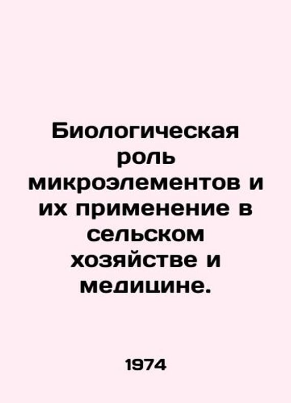The biological role of micronutrients and their applications in agriculture and medicine. In Russian /Biologicheskaya rol mikroelementov i ikh primenenie v selskom khozyaystve i meditsine.USSR Academy of Sciences. M Science 1974.We have thousands of titles and often several copies of each title may be available. Please feel free to contact us for a detailed description of the copies available. SKUalb921a61f7081661a3.