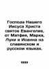Our Lord Jesus Christ, the Holy Gospel according to Matthew, Mark, Luke, and John. In Church Slavonic /Gospoda nashego Iisusa Khrista Svyatoe Evangelie ot Matfeya, Marka, Luki i Ioanna. In Church Slavonic .Book in Church-Slavonic Language. St. Petersburg Synodal Printing House 1897. We have thousands of titles and often several copies of each title may be available. Please feel free to contact us for a detailed description of the copies available. SKUalb900054f795f24928