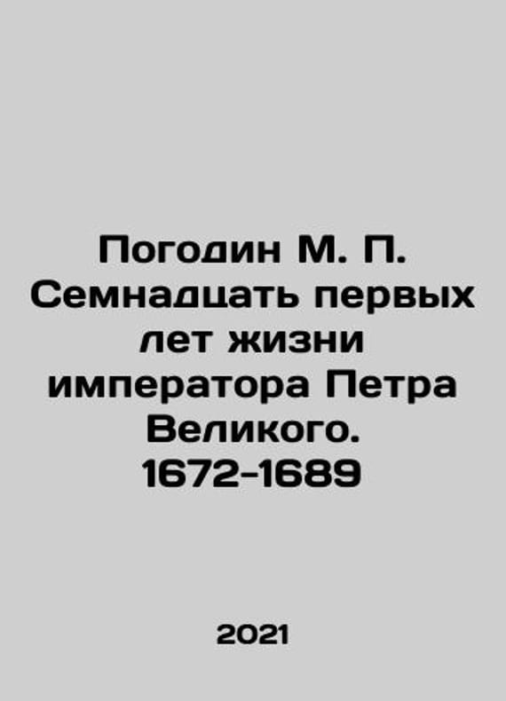 Pogodin M.P. Seventeen years in the life of Emperor Peter the Great. 1672-1689. In Russian /Pogodin M. P. Semnadtsat pervykh let v zhizni imperatora Petra Velikogo. 1672-1689. In Russian. Entry to the post of L. E. Morozova. M. Kuchkovo field 2021. 416 p. We have thousands of titles and often several copies of each title may be available. Please feel free to contact us for a detailed description of the copies available. SKUalb8643932d2bad4a5b