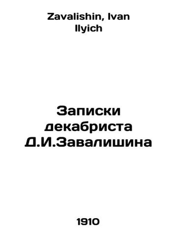 Notes by the Decembrist D.I. Zavalishin In Russian /Zapiski dekabrista D.I.Zavalishina 2nd Russian Edition, with Two Portraits of S-Pb, Moscow Publishing House M.O.Wolf 1910. 464p. We have thousands of titles and often several copies of each title may be available. Please feel free to contact us for a detailed description of the copies available. SKUalb922f48df2054e6fc.