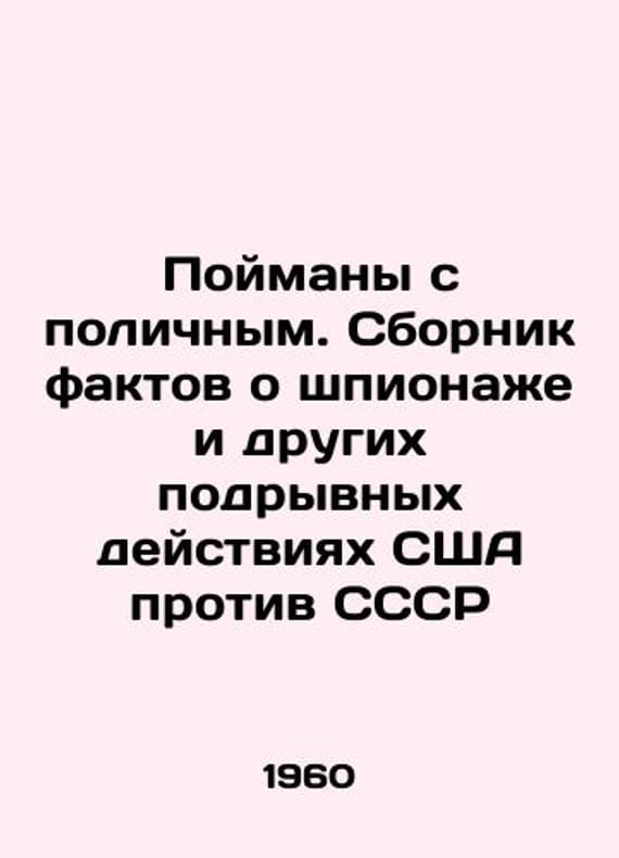 Caught red-handed: A collection of facts about US espionage and other subversive acts against the USSR In Russian /Poymany s polichnym. Sbornik faktov o shpionazhe i drugikh podryvnykh deystviyakh SShA protiv SSSR In Russian. The Soviet Information Bureau of Moscow: Type. Red Proletarian, 1960, 152 p. We have thousands of titles and often several copies of each title may be available. Please feel free to contact us for a detailed description of the copies available. SKUalb926c498602d1aa3e