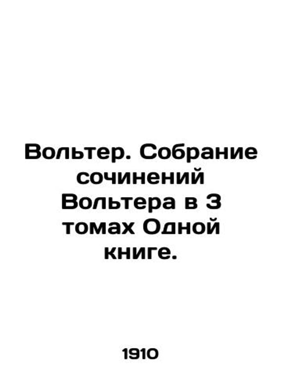 Voltaire. A collection of Voltaires works in 3 volumes of One Book. In Russian /Volter. Sobranie sochineniy Voltera v 3 tomakh Odnoy knige. Edited by V.V. Bitner. With many pictures from contemporary authors of etchings, portraits and cartoons of the 18th century. St. Petersburg Publishing House of Vestnik Znaniya (V.V. Bitner). 1910. 224 p. We have thousands of titles and often several copies of each title may be available. Please feel free to contact us for a detailed description of the copies available. SKUalb927a2ec65369215e.