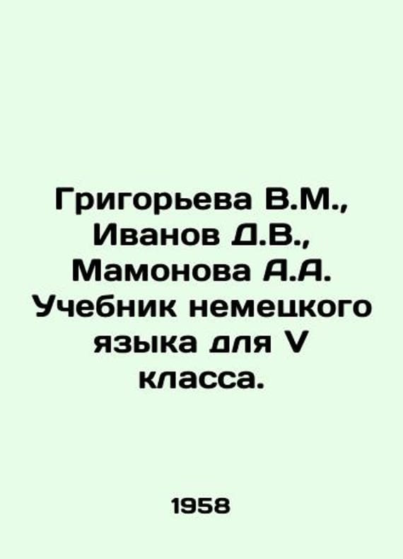 Grigorieva V.M., Ivanov D.V., Mamonova A.A. German Language Textbook for V grade. In Russian /Grigoreva V.M., Ivanov D.V., Mamonova A.A. Uchebnik nemetskogo yazyka dlya V klassa. In Russian. Edition 4, M. Uchpedgiz 1958, 175 pp. We have thousands of titles and often several copies of each title may be available. Please feel free to contact us for a detailed description of the copies available. SKUalb9293b7690b873210