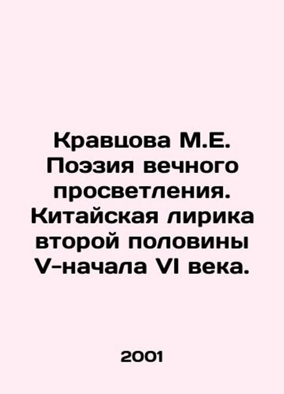Kravtsova M.E. Poetry of Eternal Enlightenment. Chinese Lyrics of the Second Half of the V-Early VI Century. In Russian /Kravtsova M.E. Poeziya vechnogo prosvetleniya. Kitayskaya lirika vtoroy poloviny V-nachala VI veka.S.Pb.Science. 2001.We have thousands of titles and often several copies of each title may be available. Please feel free to contact us for a detailed description of the copies available. SKUalb92cc3bb01829c42e.