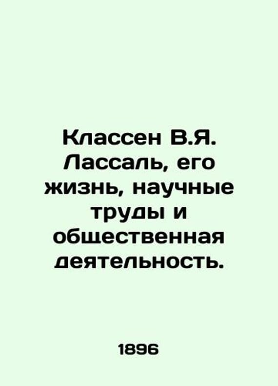 Klaassen V.J. Lassal, his life, scientific works, and social activities. In Russian /Klassen V.Ya. Lassal, ego zhizn, nauchnye trudy i obshchestvennaya deyatelnost. In Russian. Pavlenkovas housing estate in St. Petersburg. Type T-V Public utility. 1896. 160c. We have thousands of titles and often several copies of each title may be available. Please feel free to contact us for a detailed description of the copies available. SKUalb932baf6c0a3fab42