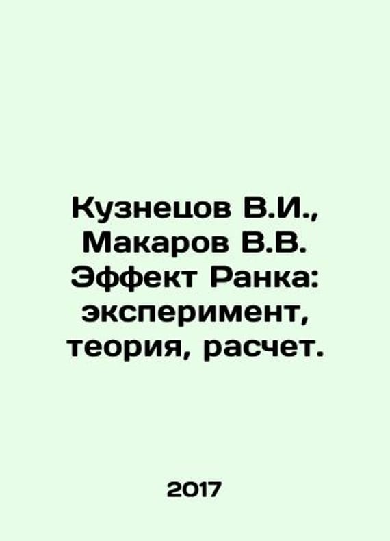 Kuznetsov V.I., Makarov V.V. Rank Effect: experiment, theory, calculation. In Russian /Kuznetsov V.I., Makarov V.V. Effekt Ranka: eksperiment, teoriya, raschet. In Russian. M. Innovative mechanical engineering in 2017. 376s. We have thousands of titles and often several copies of each title may be available. Please feel free to contact us for a detailed description of the copies available. SKUalb933c0325f928ceea