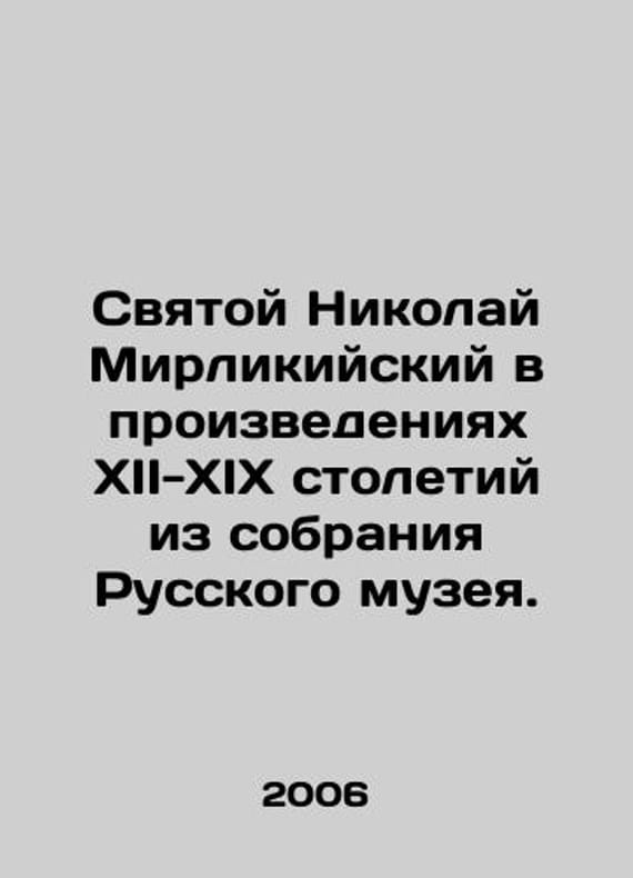 Saint Nicholas of Myra in the works of the twelfth and nineteenth centuries from the collection of the Russian Museum. In Russian /Svyatoy Nikolay Mirlikiyskiy v proizvedeniyakh XII-XIX stoletiy iz sobraniya Russkogo muzeya. In Russian. St. Petersburg Palace Editions 2006. 248. We have thousands of titles and often several copies of each title may be available. Please feel free to contact us for a detailed description of the copies available. SKUalb93601d87c399a3de
