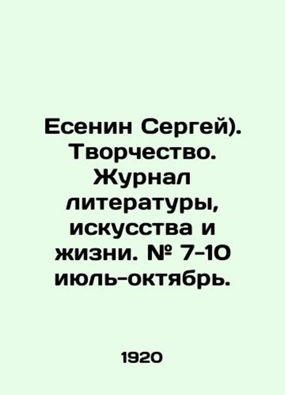 Yesenin Sergey). Creativity. Journal of Literature Art and Life. # 7-10 July-October. In Russian (ask us if in doubt)/Esenin Sergey). Tvorchestvo. Zhurnal literatury iskusstva i zhizni. # 7-10 iyul'-oktyabr'.. description: In Russian (ask us if in doubt).Excerpts from the poem Sorokoust Moscow Edition of the Moscow Council of R. K. and Kr.-art. Deputies 1920 52 pp. We have thousands of titles and often several copies of each title may be available. Please feel free to contact us for a detailed description of the copies available. SKUalb9363ddd292e55c3c