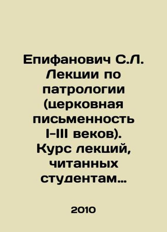 S.L. Epifanovich Lectures on Patrology (ecclesiastical writing of the I-III centuries). Course of lectures given to students of the Kyiv Theological Academy in the academic year 1910-1911 In Russian /Epifanovich S.L. Lektsii po patrologii (tserkovnaya pismennost I-III vekov). Kurs lektsiy, chitannykh studentam Kievskoy Dukhovnoy Akademii v 1910-1911 uchebnom godu In Russian. Sun. Resurrection 2010. 618 p. We have thousands of titles and often several copies of each title may be available. Please feel free to contact us for a detailed description of the copies available. SKUalb9373f250787cb420